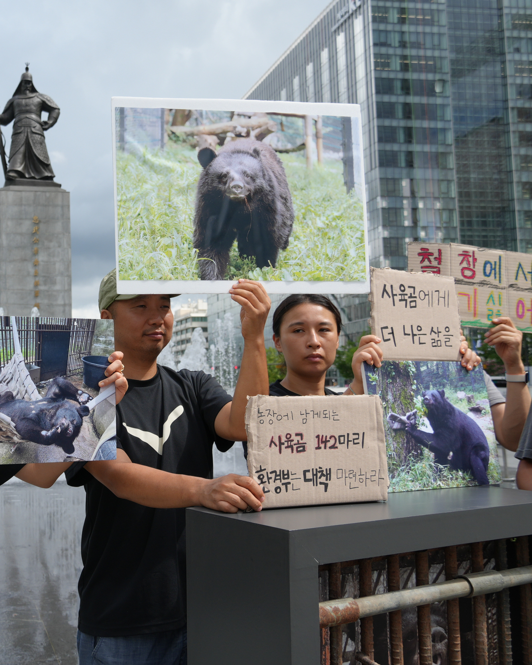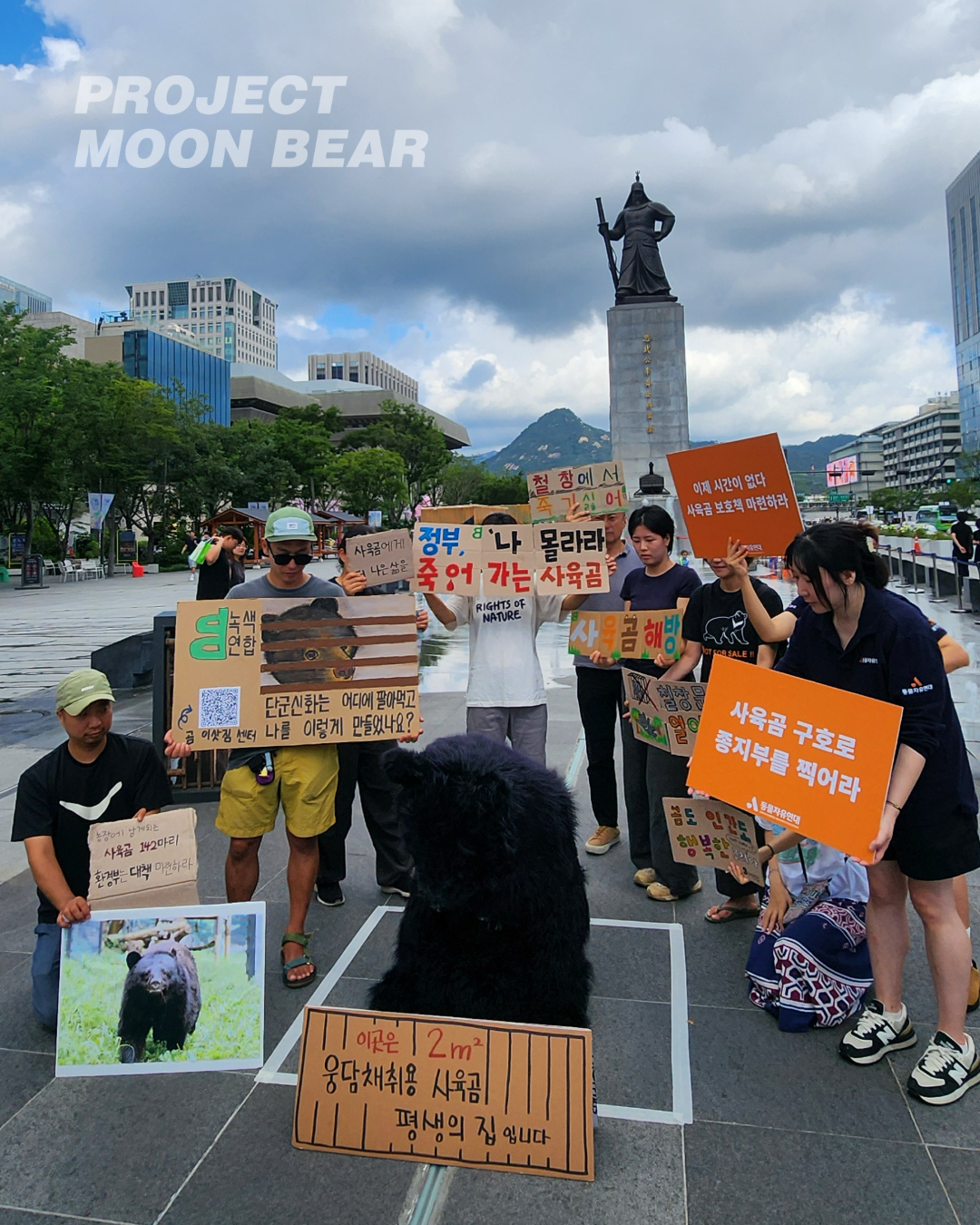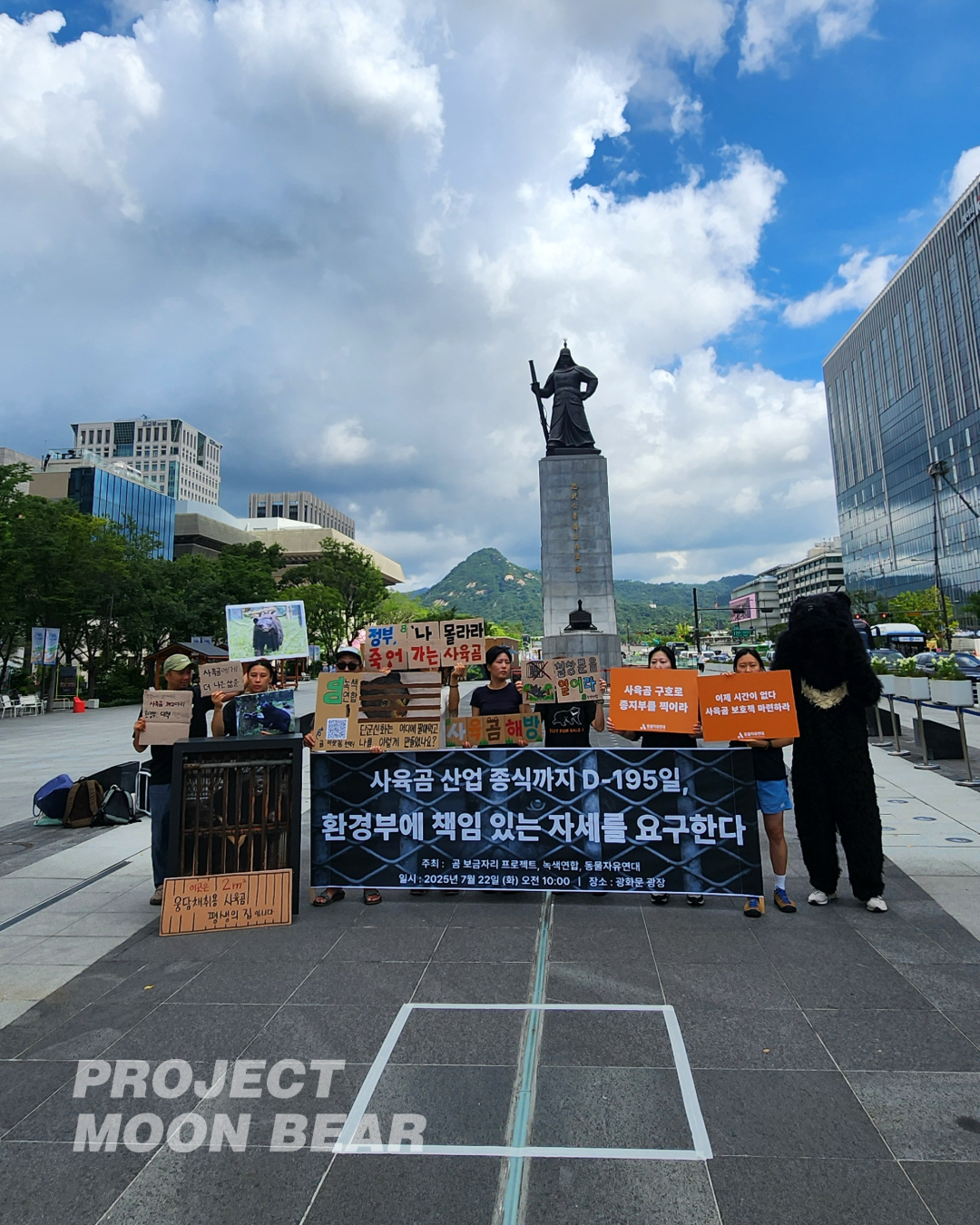 7월 22일 곰 보금자리 프로젝트, 녹색연합, 동물자유연대는 광화문에서 기자회견을 열었습니다. 사육곰 문제 해결을 위해 요 몇 년 함께 애쓰는 세 단체는 새 정부와 환경부 장관을 맞아 막바지에 이른 사육곰 정책을 정부가 제대로 해내기를 촉구했습니다.