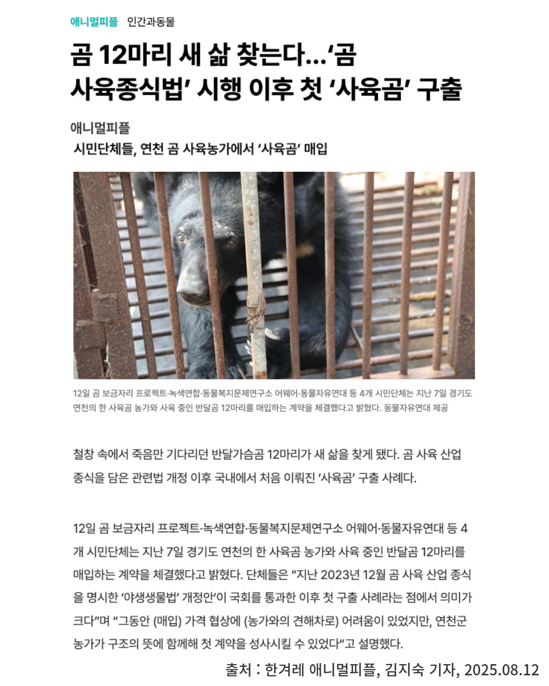 #곰보금자리프로젝트 #동물복지 #사육곰 #생츄어리 #동물보호