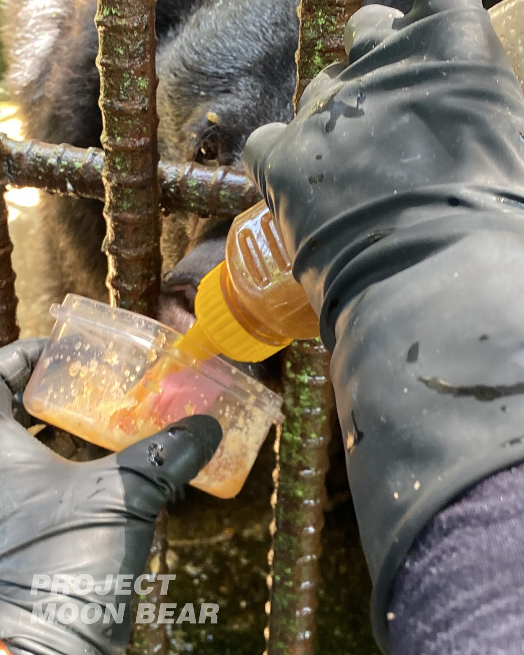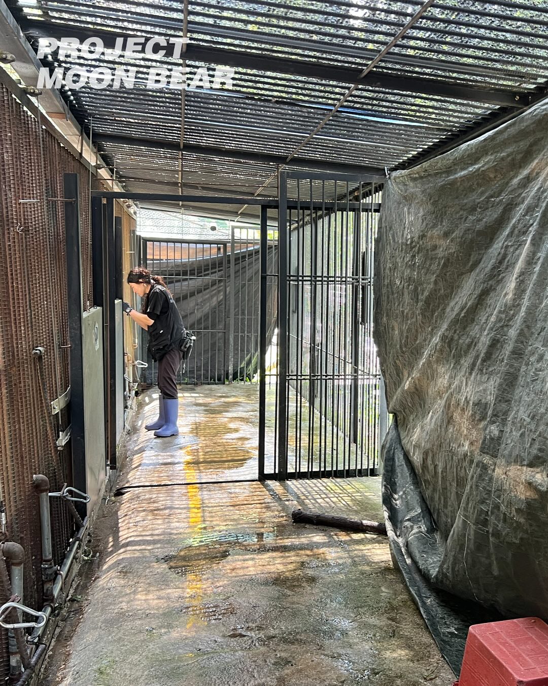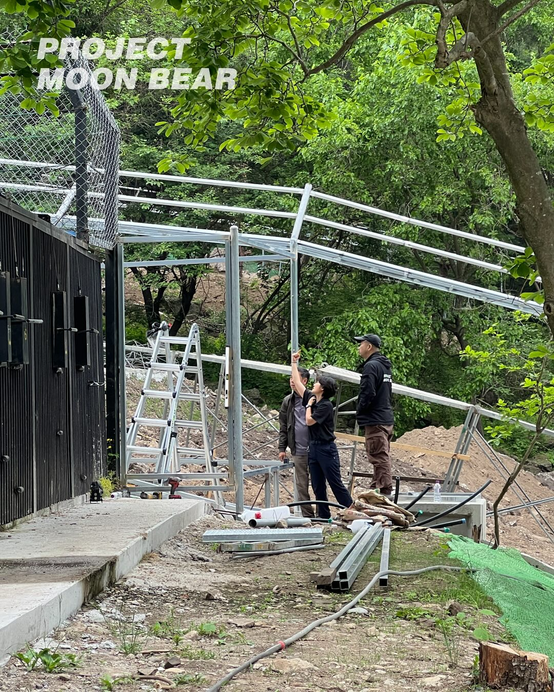 사육장을 청소하거나 먹이를 주는 시간에도 신경은 온통 공사하고 있는 곳에 가 있었고, 수시로 달려가 곰들의 반응을 살펴야 했습니다. 얼마나 시끄러운 작업이 될지 공사 업체와 상의하며 움직이는 것도 일상이 되었고요. 불안도가 높은 곰들은 실시간으로 수의사 활동가와 상의해 정신과 약을 먹이며 행동을 관찰했습니다. 또 주변에 최대한 신경쓰지 않도록 긴 시간 집중해서 먹어야 하는 먹이와 풍부화물을 주거나 곰 사육장과 가까운 곳에서 공사하는 날엔 사육장 주변에 천막을 이리저리 옮겨 달아 시야를 차단해 커다란 기계들이 보이지 않도록 해주었습니다.