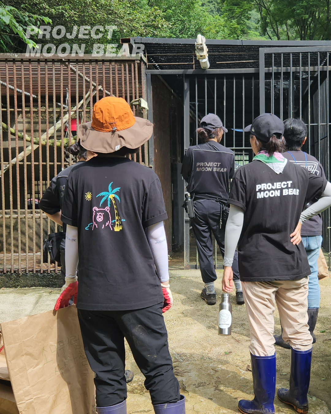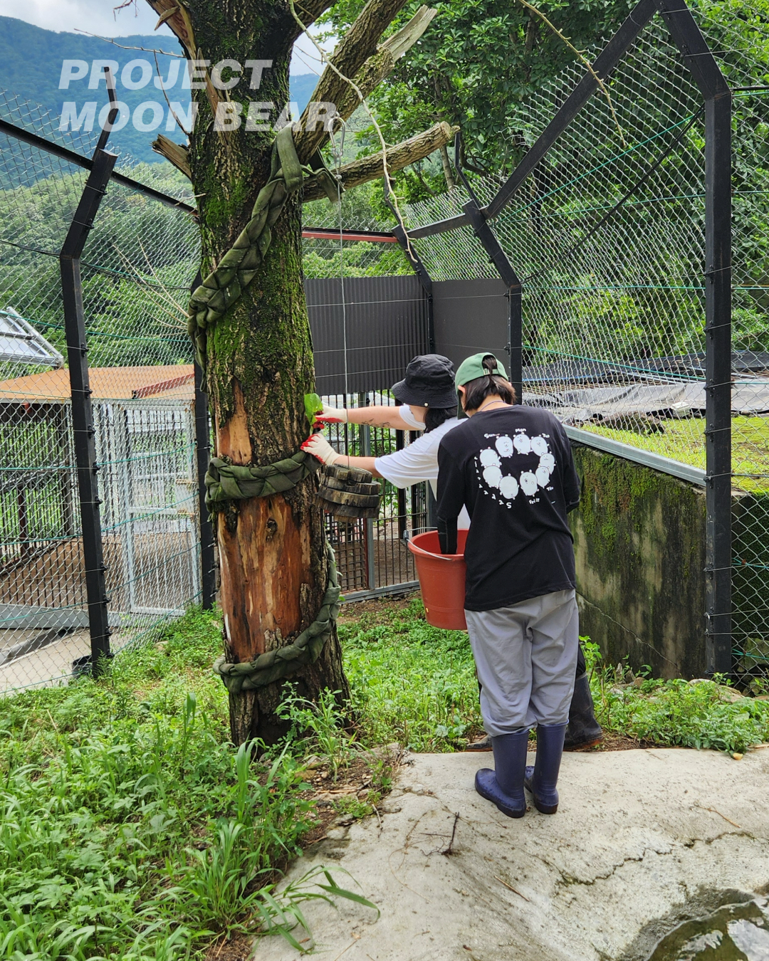 화천에서는 지난 첫 후원자 방문 행사 때부터 ‘마니또 곰’ 프로그램을 진행하고 있습니다. 열세 마리 곰 모두 반가우시겠지만, 그날 하루 내게 짝지어진 곰 한 마리만큼은 더욱 오래 기억에 남기를 바라는 마음으로요. 사육장을 돌며 활동가의 설명을 들을 때, 유독 각자의 마니또 곰을 자세히 살펴 보시던 모습. 쓰레기를 줍다가 숨겨둔 마니또 간식 쪽지를 발견하고 기뻐하시던 모습. 마니또 곰에게 줄 과채류 자루를 정성껏 꾸미고, 어떤 냄새를 묻혀줄지 고민하시던 모습. 조금은 유치할 수도 있는 이 마니또 게임에 눈을 반짝이며 참여해 주신 후원자분들께 마음 깊이 감사했습니다.