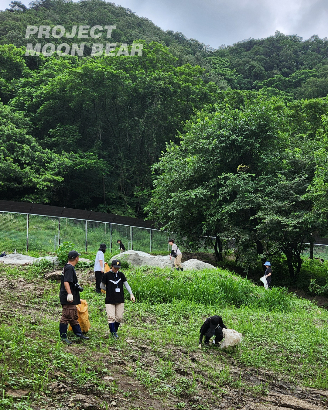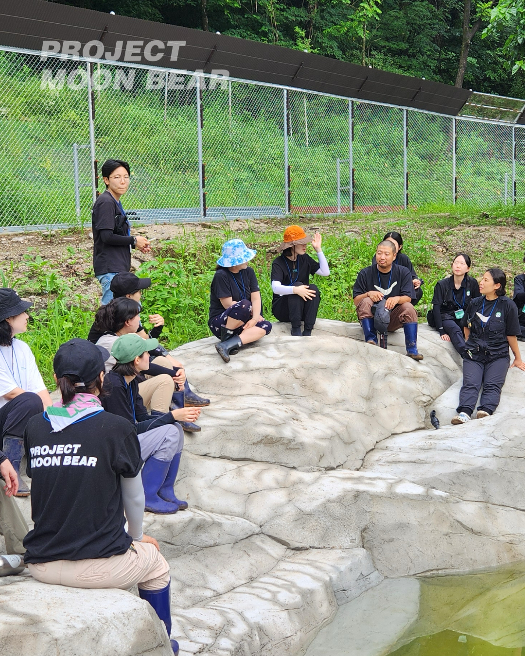도착해서는 돌봄 활동가가 곰들에 대해 설명하며 사육장을 함께 돌았습니다. 새로 지어진 너른 방사장에서는 수영장 가장자리에 둘러 앉아 함께 도시락을 먹기도 하고, 평소 활동가들에게 궁금하셨던 점들을 나누기도 했습니다. 공사로 생긴 잔여 쓰레기들도 함께 주웠고요. 공사 기간 동안 방사장에 나오지 못하다가 오랜만에 곰숲을 밟은 알코는 이곳저곳을 누비며 후원자 분들을 반겼습니다. 사람들로 북적이는 낯선 풍경 앞에서도 태연히 간식을 꺼내 먹는 알코의 모습에 웃음이 났습니다.